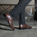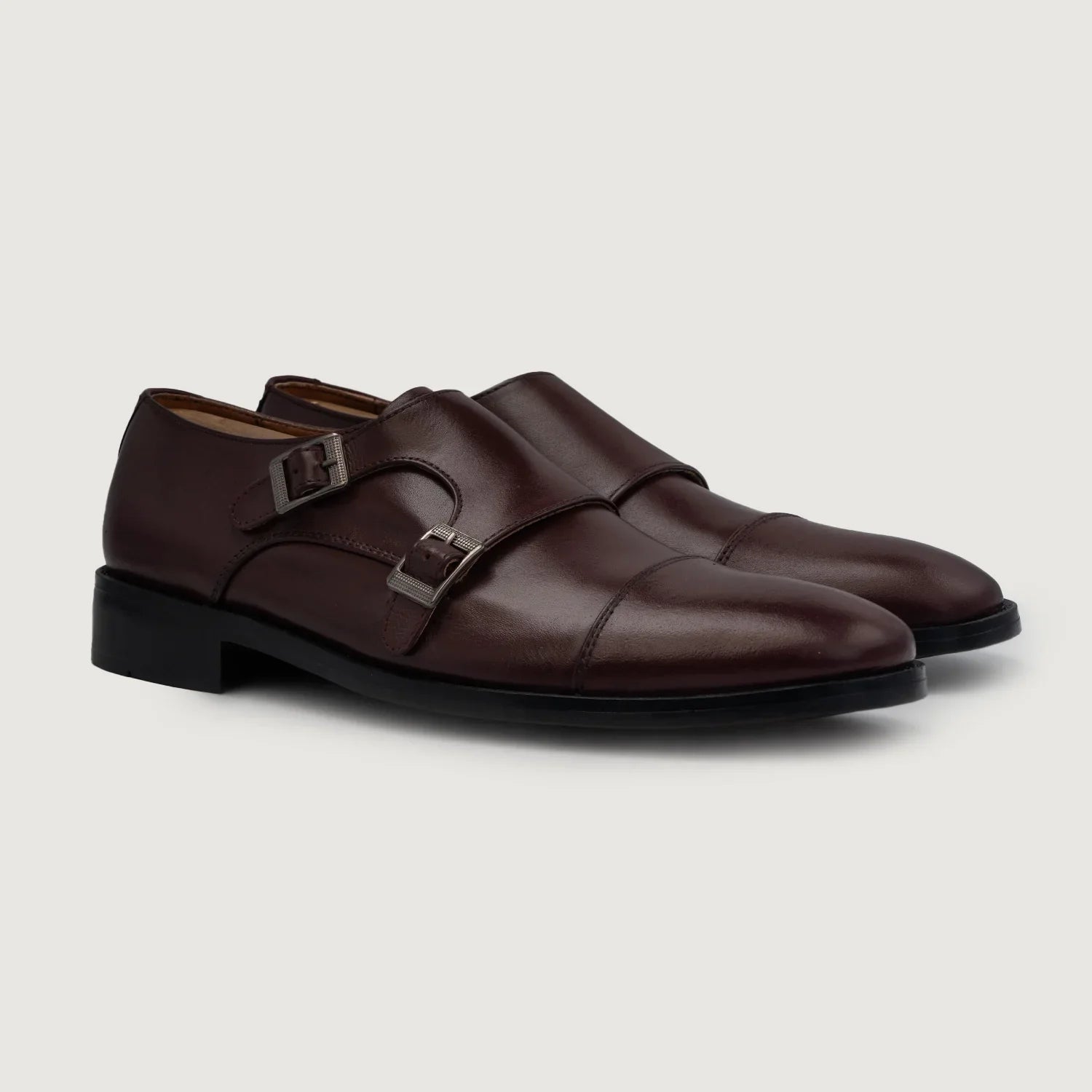 Boston Double Monk Strap Maroon Leather Shoes