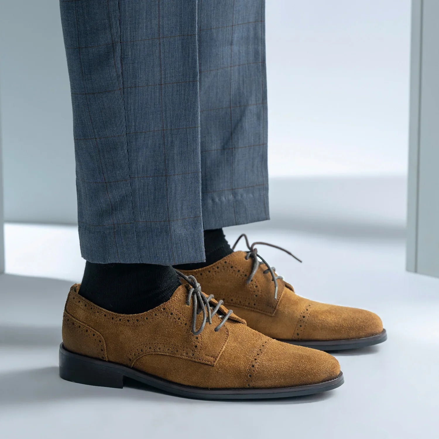 Dirk Brogues Derby Brown Suede Leather Shoes - StudGuard